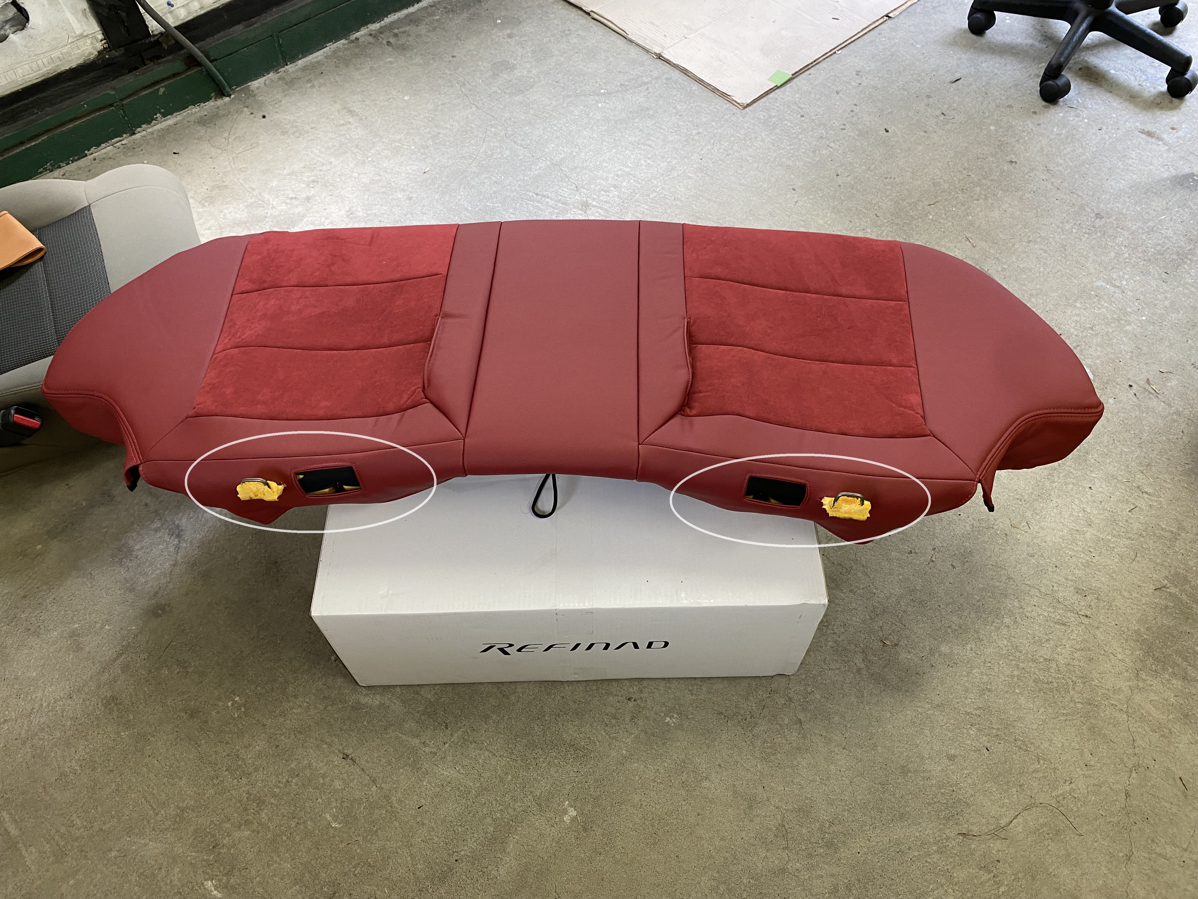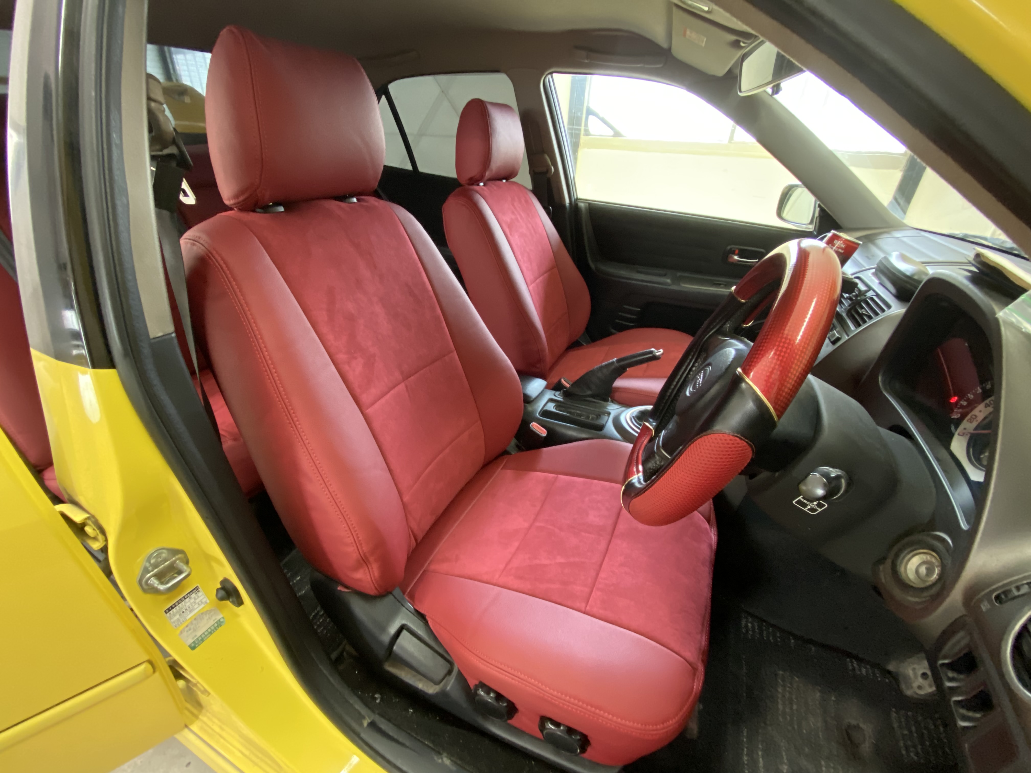 アルテッツァにレザーシートカバー装着 2021/07/23 車種:TOYOTA アルテッツァ 商品:レフィナード カラー:ワイン 装着時間(シートカバー):5時間 装着難度: BCC 【装着難度】 A・・比較的簡単 B・・技術と体力を要する C・・一般のお客様では困難 今回のご依頼はシートカバーお持ち込みです レフィナード製は生地が硬く伸びにくい為に大変取付が困難なメーカーです。 リヤシートは全て取り外しての取付が必要です。 リヤシート座面後部のフック穴が異なっていたためサービスで加工をして取付しました。 この度はご用命いただきありがとうございました。 ユニオンレザー横浜