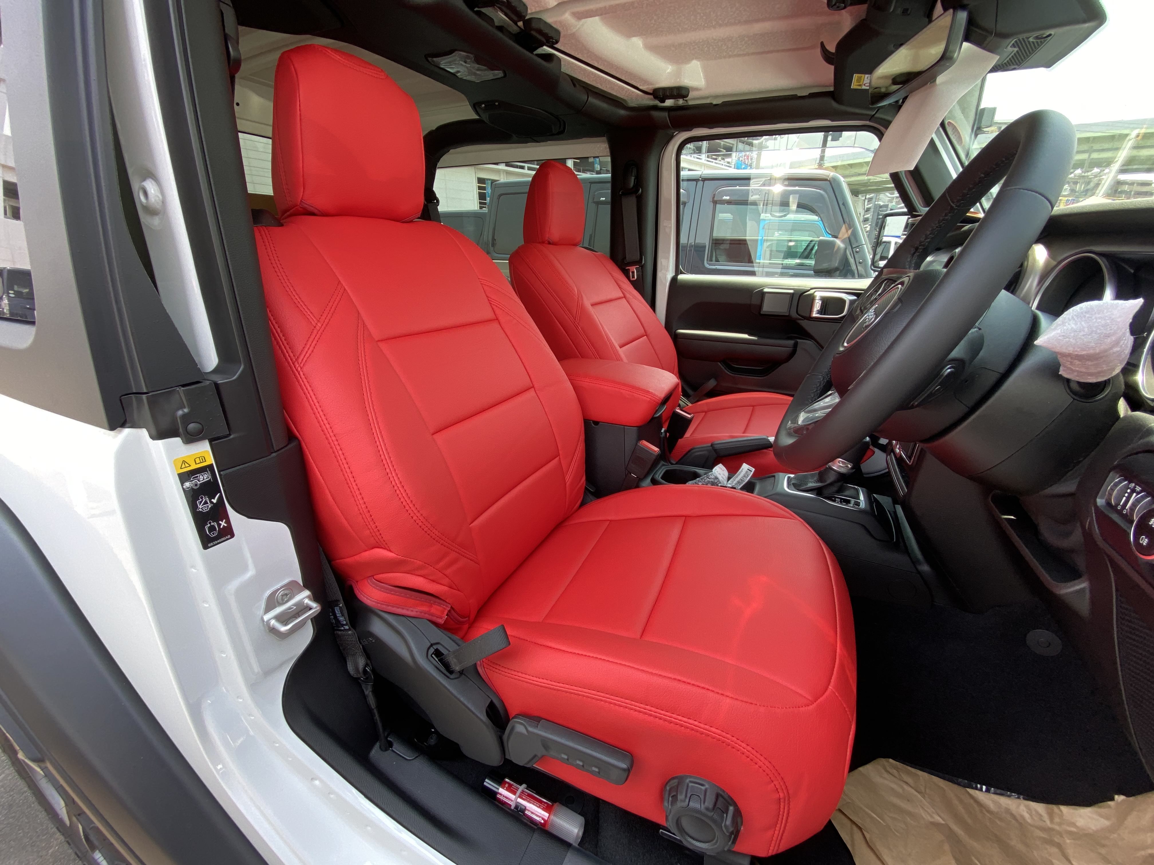 ラングラーにレザーシートカバー取付け 2021/06/09 車種:JEEP JLラングラー 商品:Dotty EURO-LUX カラー:赤 装着時間:5時間 装着難度: BC 【装着難度】 A・・比較的簡単 B・・技術と体力を要する C・・一般のお客様では困難 この度はご用命いただきありがとうございました。 ユニオンレザー