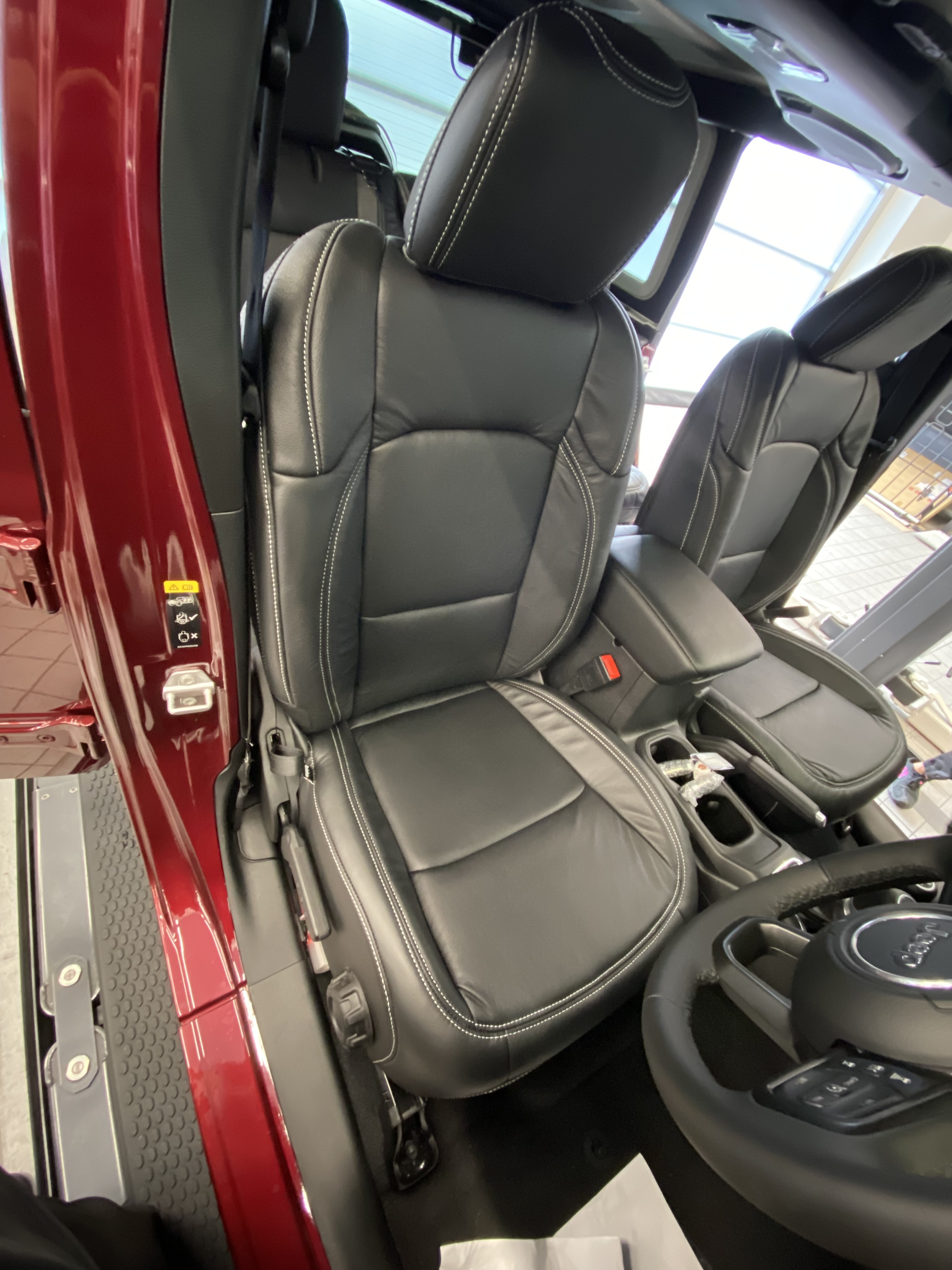 Jeepラングラーアンリミテッドの本革シート張替え 2021/06/18 車種:jeepラングラーアンリミテッドスポーツ2021年新車 商品:USA 本革シート張替え カラー:ブラック&シルバーステッチ 装着時間(シートカバー):7時間(2名施工) 装着難度: CCC(一般ユーザーは取付不可) 【装着難度】 A・・比較的簡単 B・・技術と体力を要する C・・一般のお客様では困難 この度はご用命いただきありがとうございました。 ユニオンレザー