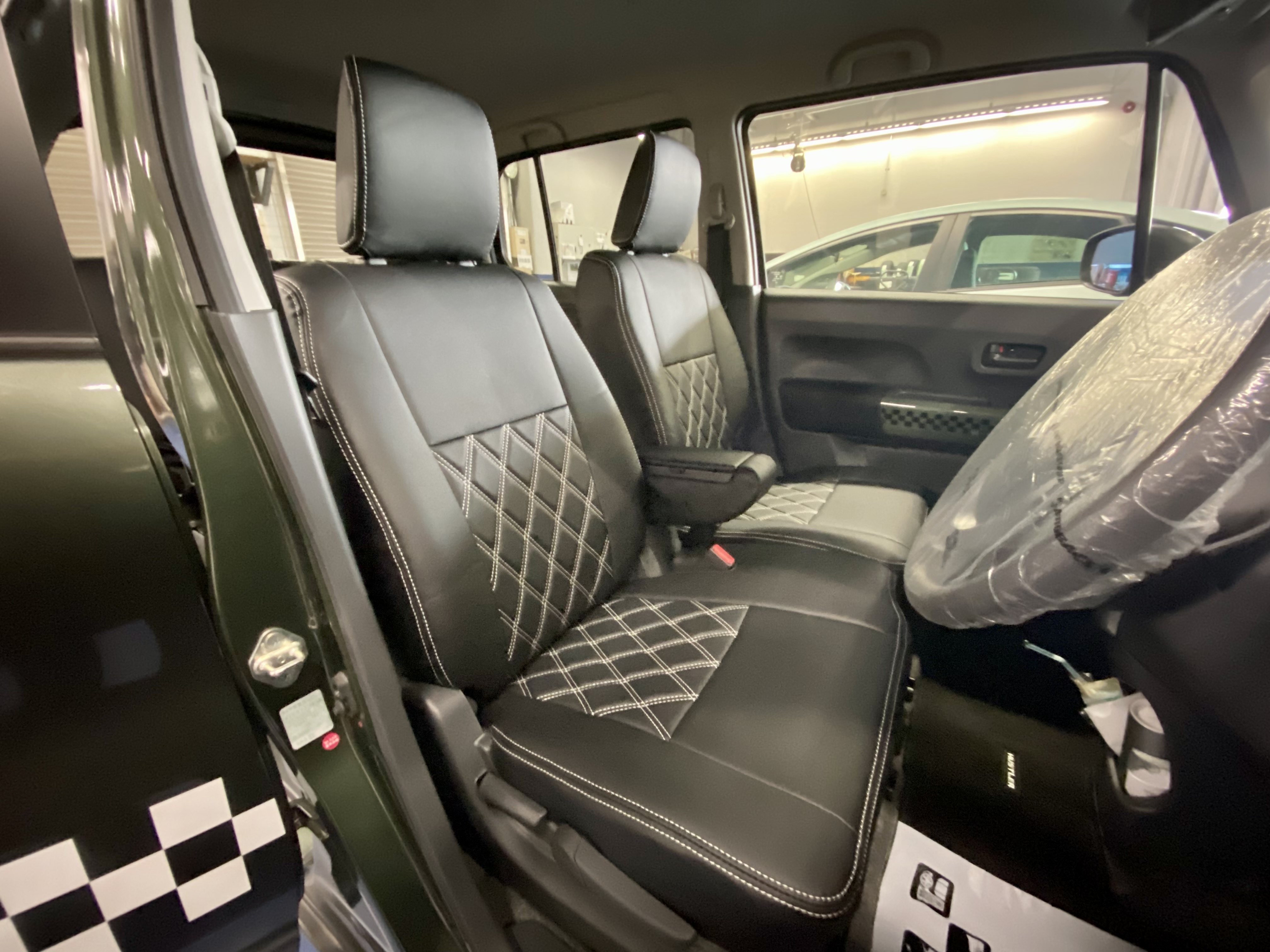 SUZUKIハスラーにレザーシートカバー装着 2021/06/22 車種:SUZUKIハスラー 商品:clazzio DIA カラー:ブラック 装着時間(シートカバー):2.5時間 装着難度: AB 【装着難度】 A・・比較的簡単 B・・技術と体力を要する C・・一般のお客様では困難 この度はご用命いただきありがとうございました。 ユニオンレザー